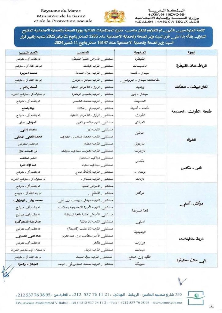 Par ailleurs, le ministère de la Santé a publié les résultats définitifs des entretiens de sélection pour pourvoir les postes de directeurs des hôpitaux régionaux et provinciaux. Cependant, ces résultats révèlent un désintérêt marqué des candidats pour ces fonctions, avec une participation très limitée, réduite à un nombre restreint de postulants.